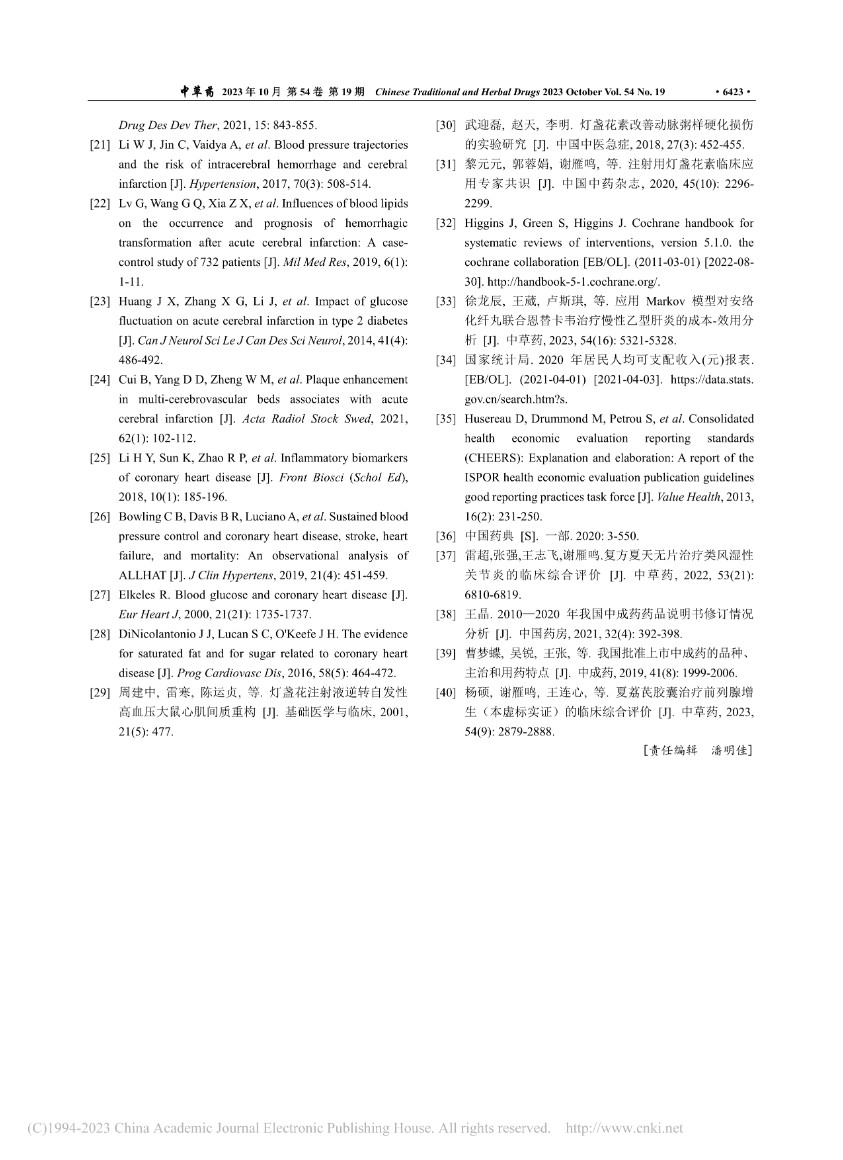 注射用燈盞花素治療腦梗死的藥物經(jīng)濟學(xué)評價