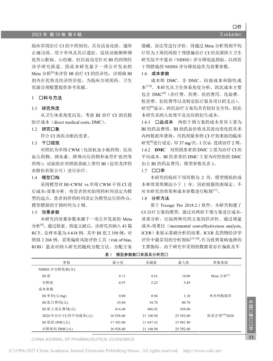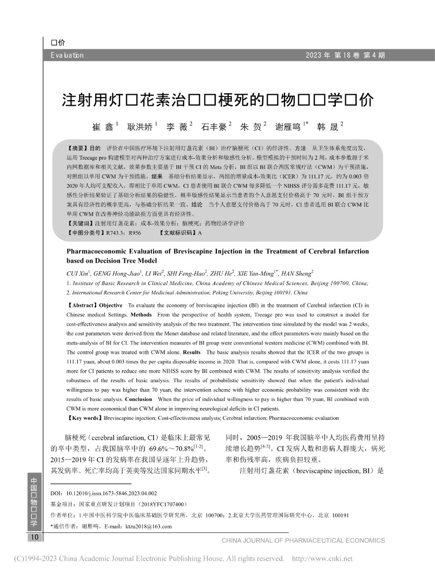 題目:注射用燈盞花素治療腦梗死的藥物經濟學評價